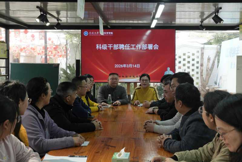 又讯。3月14日上午学院召开科级干部聘任工作部署会。党委书记曹阳传达了学校科级干部聘任工作部署会会议精神,解读了《南通大学2026年科级干部聘任工作方案》,对符合申报条件的教职工进行了报名动员。