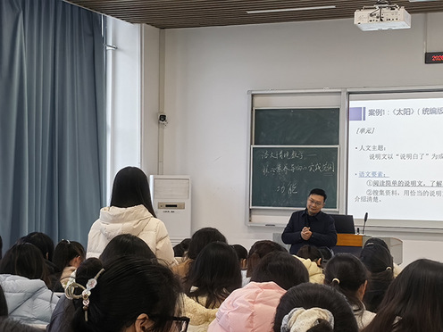 3 月 17 日上午,网络赌博平台大全 教授公开课暨课程思政课展示活动如期开展。陆平教授为 22 级小学教育专业 100 余名乡村小学定向生,执教示范课《语文情境教学 —— 核心素养导向的实践范例》。