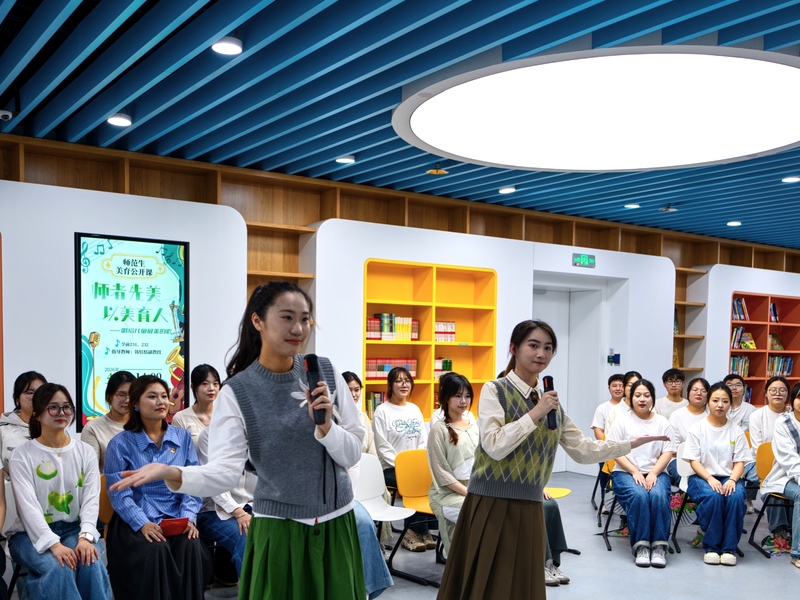 为深化美育教育实践,提升学前教育师范生专业素养,4月9日,网络赌博平台大全 23级学前教育师范专业在南通市少儿图书馆开展《师者先美,以美育人——唱给儿童最美的歌》师范生美育公开课。本次公开课由韩恬恬副教授指导,以歌唱为载体,将美育理念、儿童视角与师范技能深度融合,展现教科院学子扎实的专业功底与育人情怀。